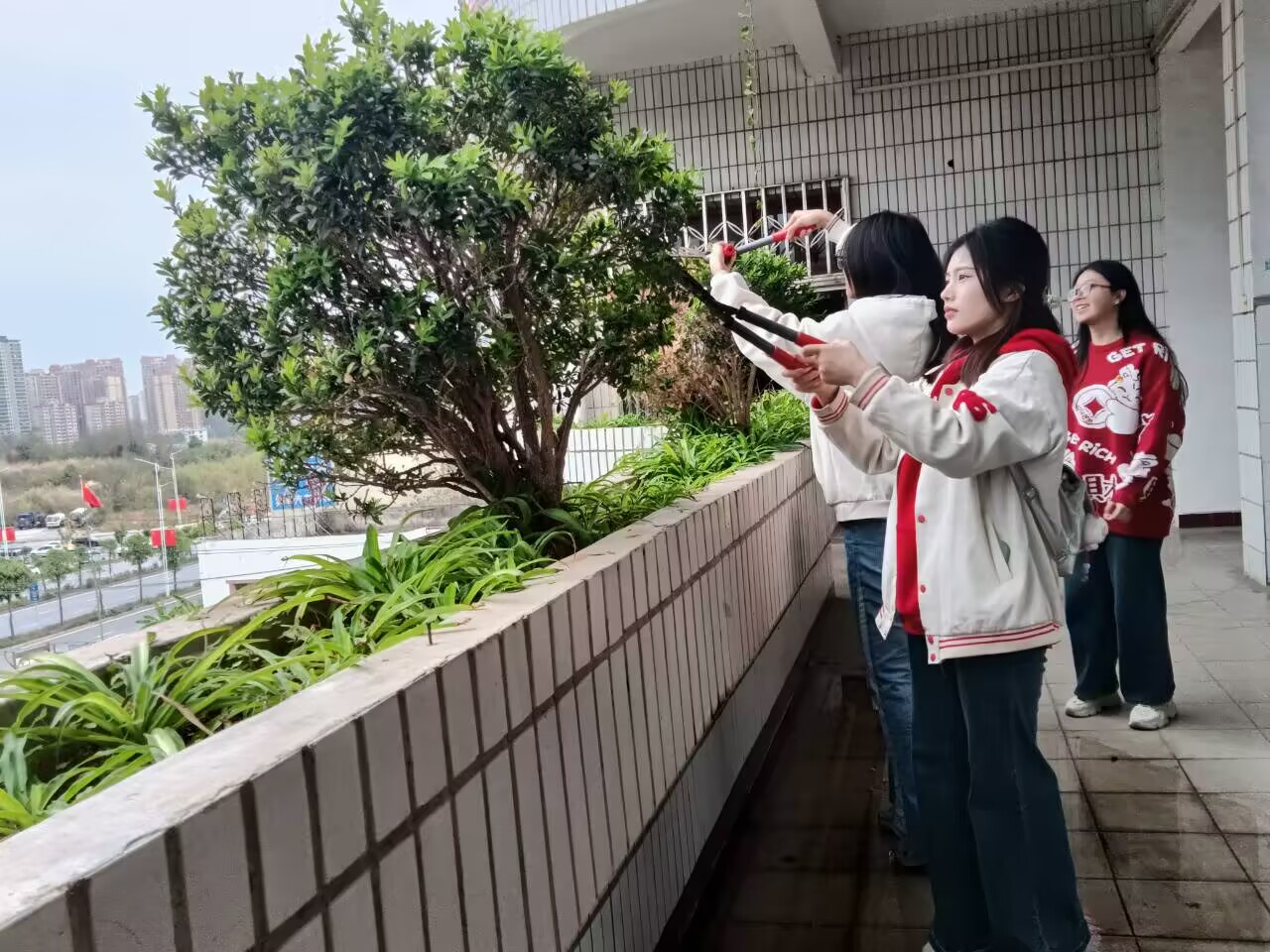 活动有序进行。全体党员按照任务分工,各司其职,协同作业。在修剪树木时,党员们运用园林、园艺专业知识,对校园内的树木进行了科学合理的修剪,为校园绿化注入了新的生机与美感。同时,清扫了地面杂物和卫生死角,确保了校园环境整洁有序。活动过程中,党员们充分展现出良好的精神风貌和高度的责任意识。