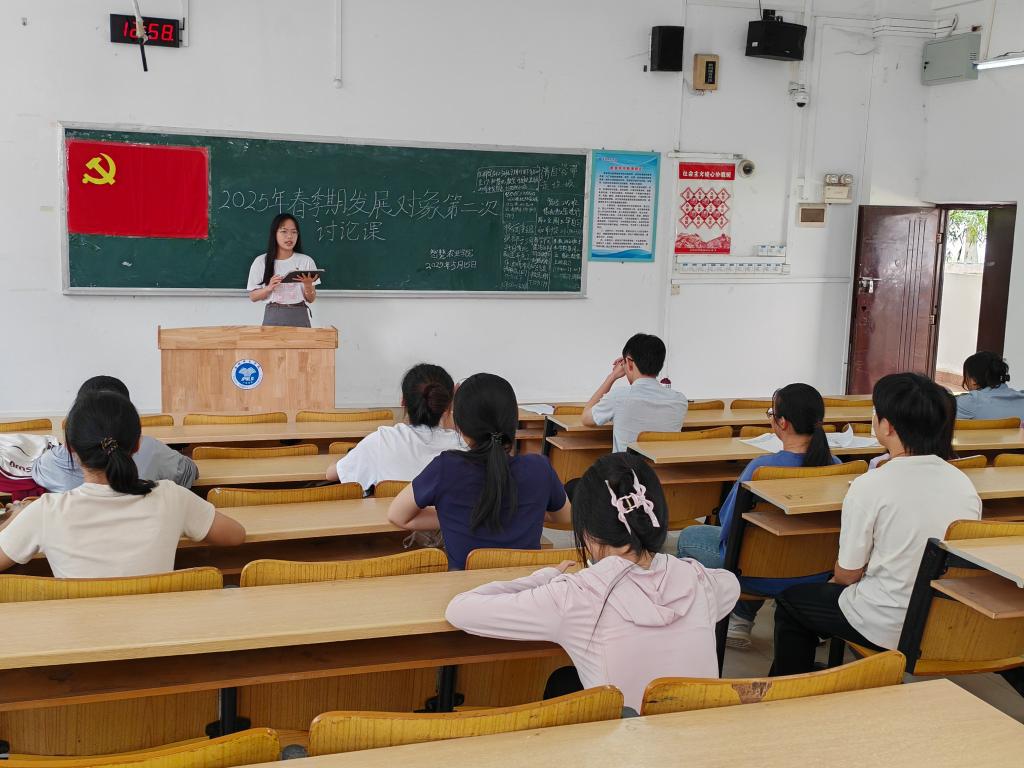 5月15日,我院于我校东校区博学楼1-103教室召开2025年春季期发展对象第二次讨论课,主题为“围绕党的二十届三中全会精神,谈谈铸牢中华民族共同体意识的重要性”,该讨论课由阮淑晴主持,党员赖舒怡、许红卫及全体发展对象参与本次讨论课。