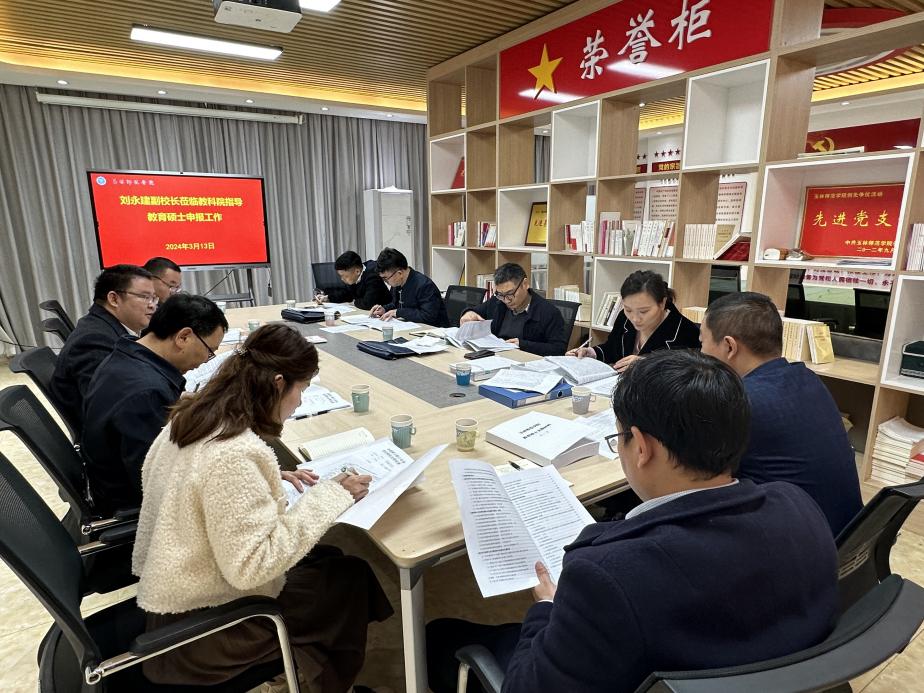 3月13日、14日,学校党委常委、副校长刘永建率科研处(研究生处)相关负责人到教育科学学院、yL23411永利集团、化学与食品科学学院指导硕士点申报工作,三个学院领导班子、骨干教师以及申硕材料写作班子等参加会议。