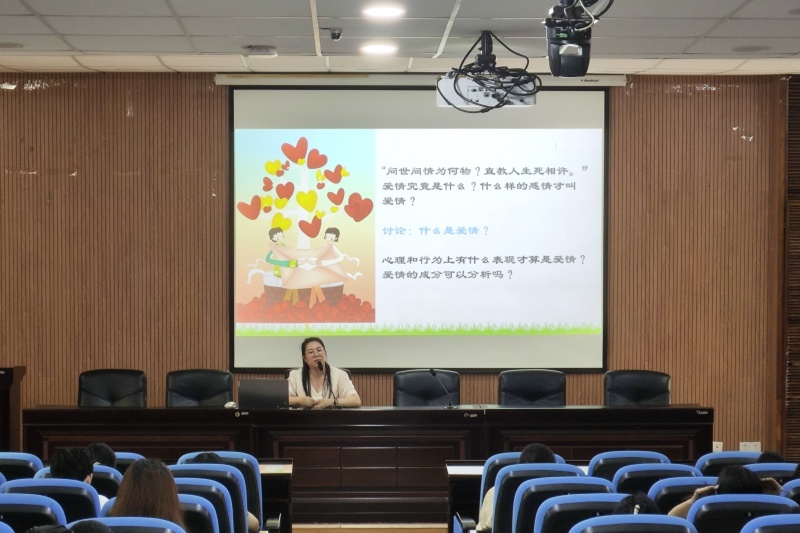 讲座上,吕学巧从“什么是爱情”、“我们为什么相爱”、“我们怎样去爱”、“爱的结束”以及“性心理困惑”等五个议题展开讨论。讲座中吕学巧通过不同的爱情诗句,引导学生学会“给予爱”、“接受爱”、“鉴别爱”以及“拒绝爱”。随后通过列举几个典型的恋爱案例,形象地向学生们传递正确的恋爱价值导向,并针对如何建立起正确的恋爱观给出了三点建议:一是爱己爱人,彼此尊重放在首位;二是各抒己见,加强双方有效沟通;三是相互激励,建立共同价值追求。