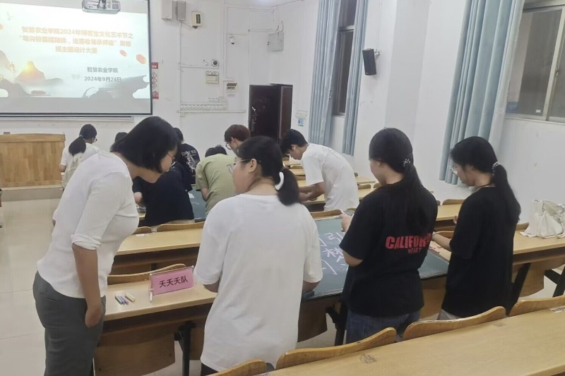 9月24日下午,我院于我校东校区厚德楼1101举办以“笔尖粉墨提撇捺,运墨收笔承师德”为主题的黑板报设计大赛,我院团委书记郑薇薇、学生代表韦成涛及黎茜担任此次大赛的评委,共同见证参赛选手挥洒创意、致敬师德的精彩瞬间。