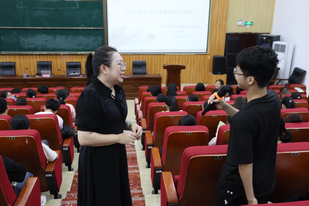 讲座伊始,吕学巧通过热身小游戏“小鸡快跑”,拉近了与新生的距离。讲座中,吕学巧以专业的知识和生动的案例,深入浅出地讲解了大学生常见的心理问题及应对方法。她强调了心理健康对于大学生成长成才的重要性,引导同学们正确认识自己的情绪和压力,学会积极的心理调适技巧。最后,讲座围绕心理健康的维护和促进、心理咨询为同学们提出了一些切实可行的建议,介绍了我校心理咨询中心的场所、预约方式和服务内容,引导新生在今后的大学生活中,遇到问题要善于自助、敢于求助,培养自信、乐观、积极的心态。