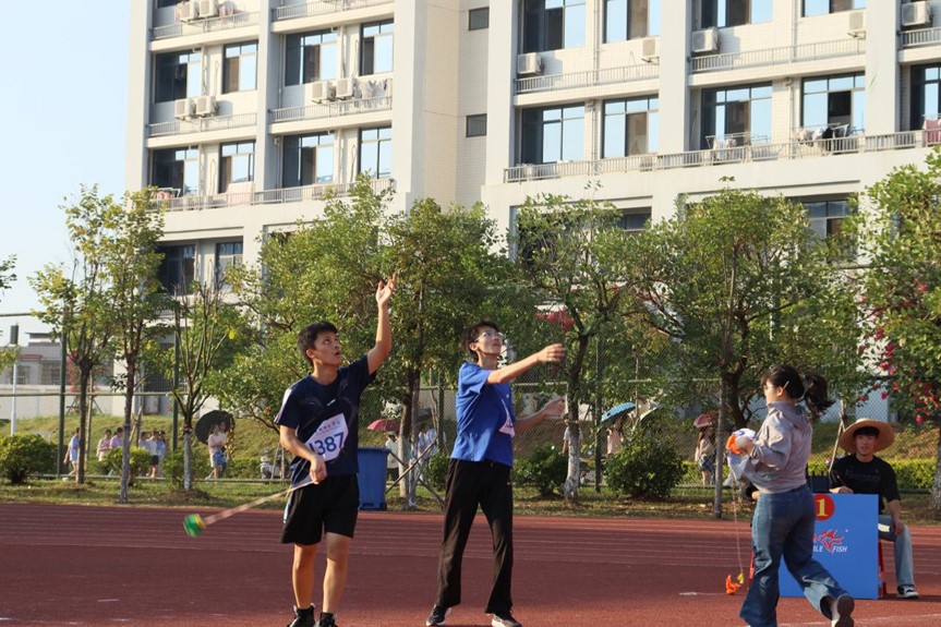 高杆投绣球项目是一场力量与准度的较量。参赛选手需要站在指定位置,将手中的绣球准确投进远处的高杆上。这不仅考验着选手们的投掷技巧,更考验着他们的专注力和精准度。只见参赛选手凝神静气,瞄准目标,然后用力一挥,绣球便在空中划出一道美丽的弧线,准确地落在目标上。经过多轮的较量,物电学院获得第一名,数统学院获得第二名、智农学院获得第三名,为观众带来了一场视觉盛宴。
