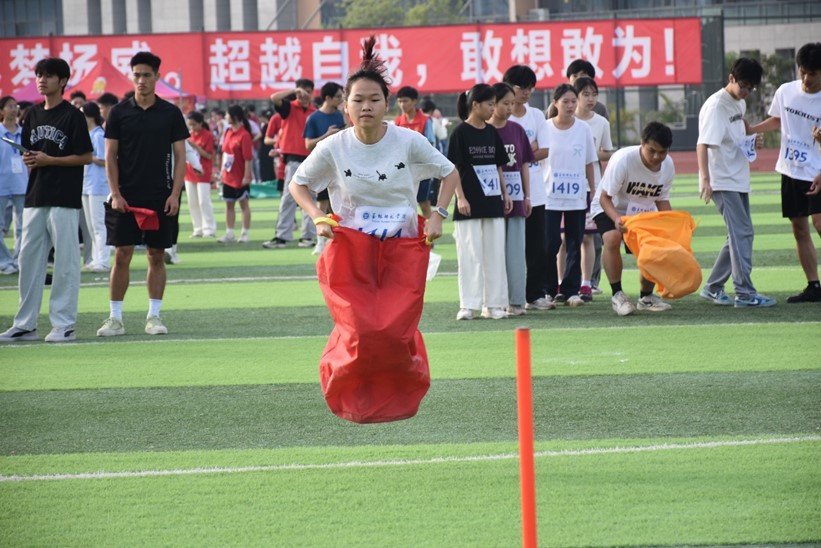 袋鼠跳接力项目以其独特的趣味性和挑战性吸引了众多观众的目光。参赛选手身穿袋鼠服装,双脚并拢跳跃前进。他们不仅要在速度上保持领先,还要在跳跃过程中保持平衡与稳定。选手的欢乐表现不仅让观众捧腹大笑,更为运动会增添了一抹亮丽的色彩。最终,我院凭借出色的跳跃能力和稳定的发挥,成功夺得了该项目第五名。