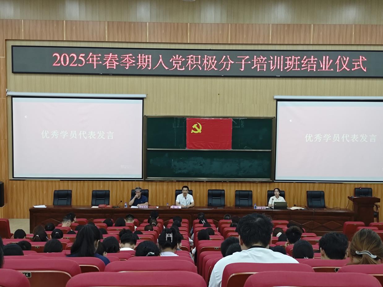 6月10日,我院分党校、数学与统计学院分党校于我校东校区明德楼113教室举行2025年春季期入党积极分子培训班结业仪式。数学与统计学院党委书记庞伟、我院党委书记梁修杰、各学生党支部书记及第十八期入党积极分子参加培训班结业仪式。此次培训班结业仪式由数学与统计学院学生第一党支部书记丘夏薇主持。